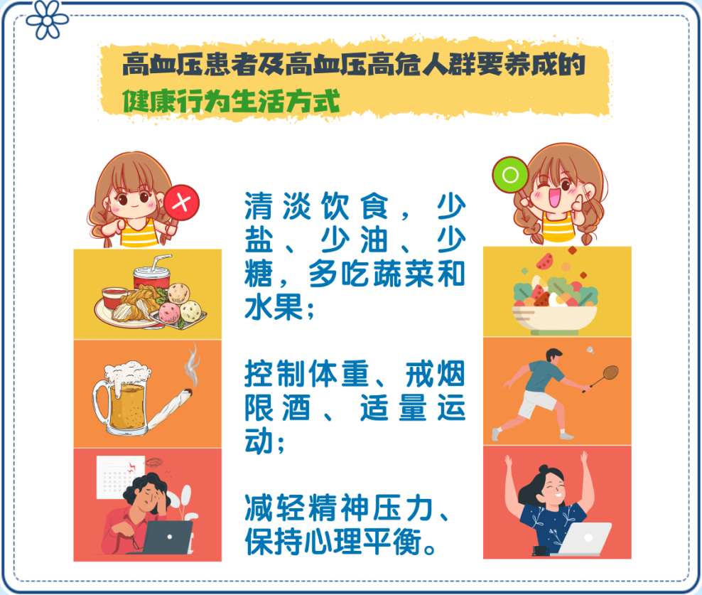 一、保持健康生活,预防和控制高血压1.减少钠盐摄入:钠盐摄入过多与高血压、心血管病风险增高密切……【查看详情】 |