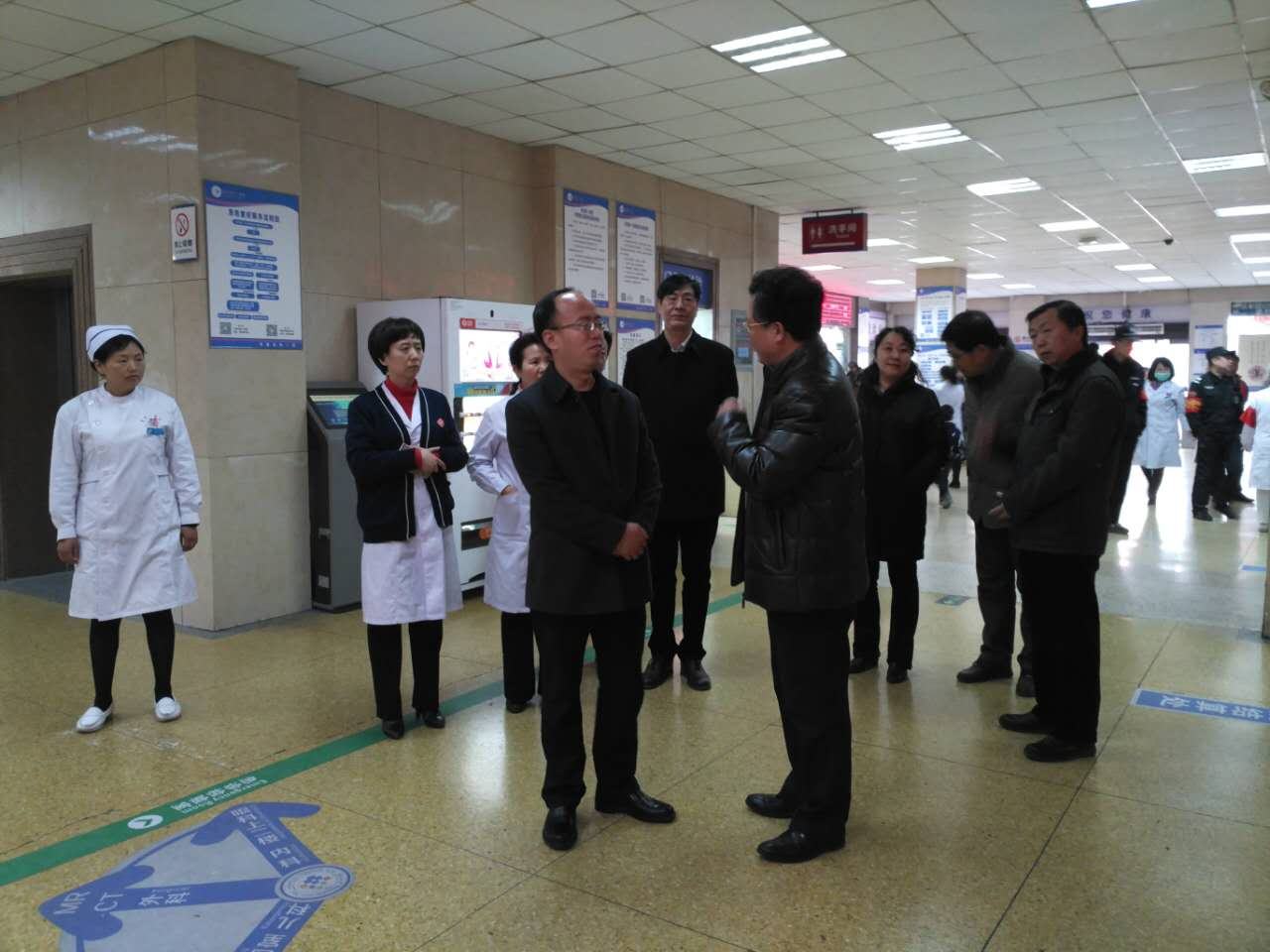 检查督导新年第一天工作。视察过门、急诊开诊情况后,医院全体领导班子在胸痛中心会议室向委领导汇报春节期间全院工作情况。