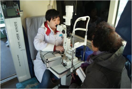 眼科门诊陆慧琴主任为当地群众检查