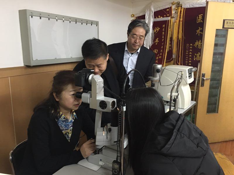 讲座后专家们还不辞辛苦的走进病房,进入诊室,现场为许多慕名而来的甘肃当地的角膜病患者诊疗,并给康复中心医院的医生讲解这种特殊患者的观察要点、手术诊断标准、手术诊疗常规、以及用药计量和后期如何建立追溯病历,确保给患者科学、全程、规范的医疗服务。
