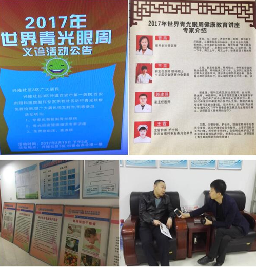 现场活动一:2017年3月15日下午14:00至16:00在长安区兴隆社区三区居委会会议室举办了2017世界青光眼周主题为《像监测血压一样监测眼压 像保护生命一样保护视力》科普知识讲座,本次听讲座的居民达200余人,21点游戏攻略站