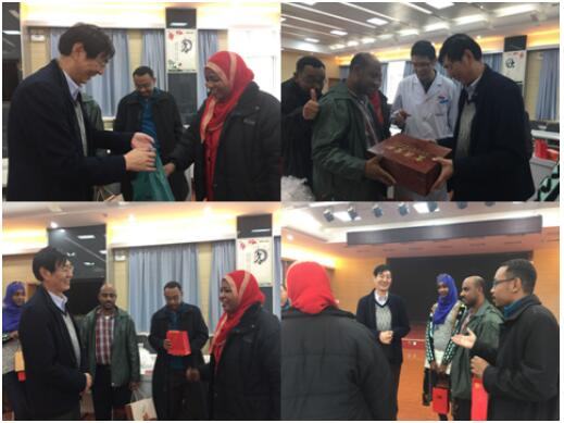 宋国忠副院长为4名来华医师及远在苏丹的朋友们赠送礼物并送上祝福