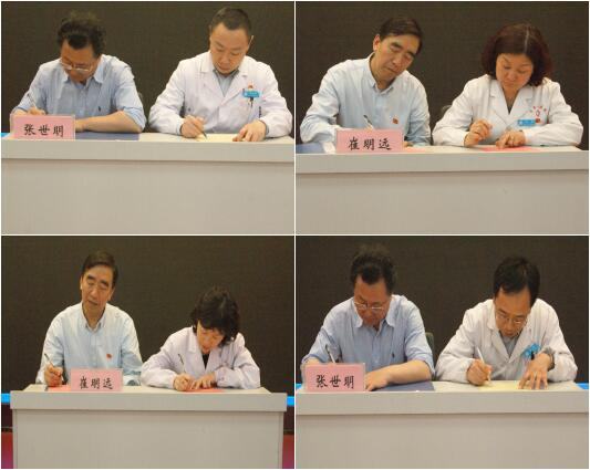 会议最后,院党委书记崔明远、院长张世明分别与党支部书记代表、临床科主任代表签订了《党风廉政建设责任书》和《行风建设责任书》,确保党风廉政建设和行风建设能够层层传导压力、层层落实责任。