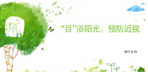 今年的6月6日爱眼日的主题是:“目”浴阳光,预防近视。对尚未近视的孩子来说,充分的户外活动,可以有效预防近视;而对已经近视的小孩来说,户外活动的保护则不明显。“这就是一个阀门,一旦打开了,近视就像洪水猛兽一样来了。”所以近视重在预防,一定要从小开始,在幼儿园阶段就要保证孩子有充分的户外活动时间,让孩子在空气新鲜、视野开阔的郊外远眺,极目欣赏祖国的山河大地。除此以外,小朋友一定要“节约用眼”,禁用手机、平板电脑等电子产品,不宜过早开发孩子的智力。