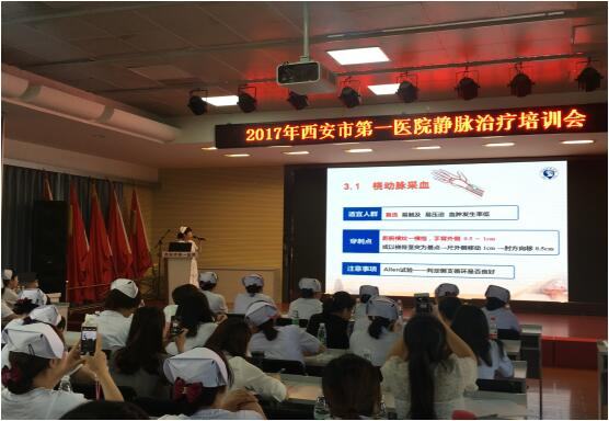 静疗组组长、陕西省静疗委员会副主委、干部楼总护士长杨秋芬、干三病区护士长赵英进行静脉治疗培训授课暨院外专家进行行业新标准解读。