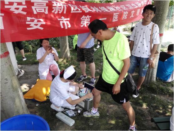 文理分院医护人员承担此次运动会医疗保障工作,为运动员们积极处理突发受伤等情况,也受到组办方及兄弟单位赞扬。