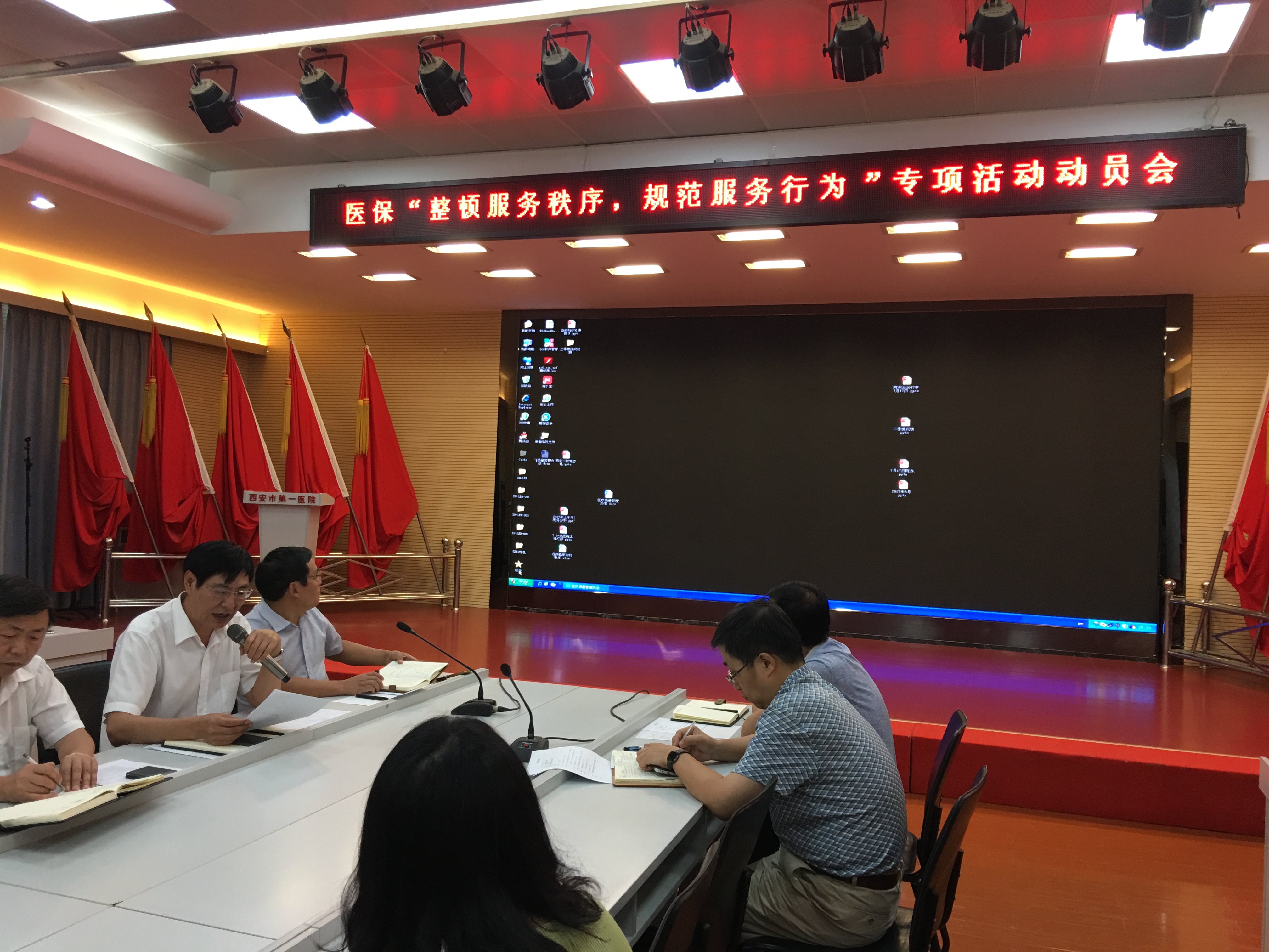 会上宋国忠副院长传达了西安市人力资源和社会保障局《西安市人力资源和社会保障局关于印发“整顿服务秩序、规范服务行为”专项整治活动方案通知》、西安市社会管理中心《西安市社会保险管理中心关于开展定点医药机构专项整顿工作的通知》(市社保发[2017]54号文件)。宋院长从多个方面强调了医保工作及此次专项整顿活动的重要性。要求全员职工认真学习医保政策、规范医疗行为,增强法制意识,切实保障广大患者的权益。全院临床科室认真自查,坚决杜绝冒名顶替、挂床住院、分解住院、串换诊疗项目、过度医疗,违规收费等套取医保基金的行为。