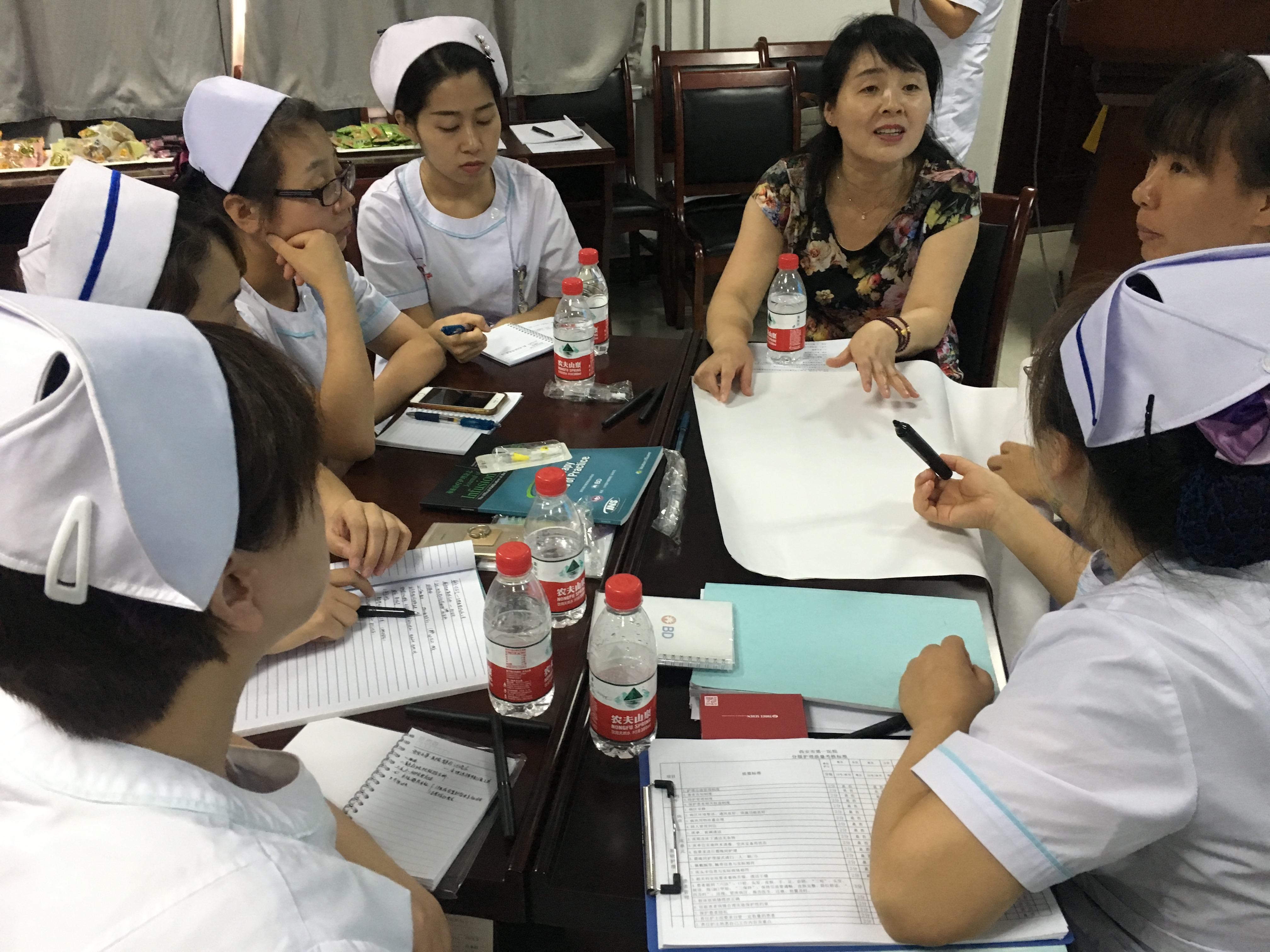 留置针使用率低进行了分组讨论,3位专家也热情参与,积极讨论,讨论中所遇到的问题,逐组专人汇报,现场进行解答归类,找到行之有效的解决办法,全场学习气氛浓烈。