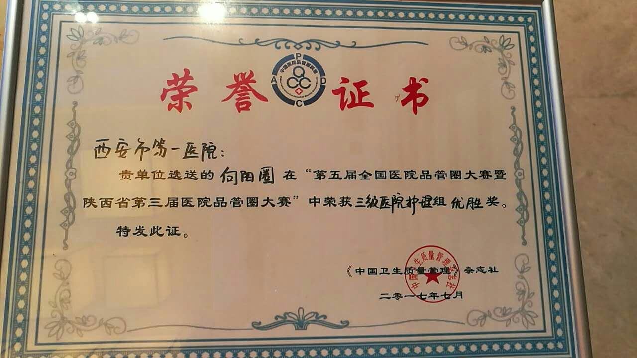 品管圈荣获陕西省第三届品管圈大赛优胜奖