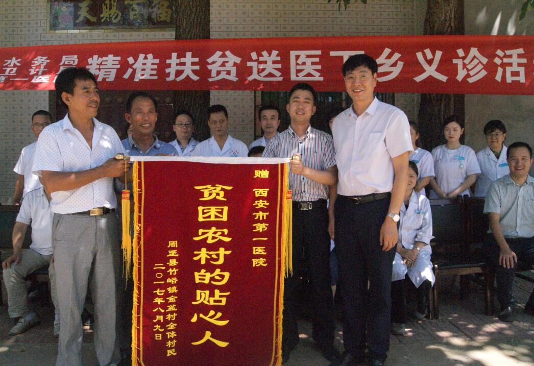13个临床科室的18名医务人员组成的医疗队,前往周至县竹峪镇金盆村,开展“精准扶贫送医下乡大型义诊活动”。市卫计委医政处主任科员董泽一同前往。