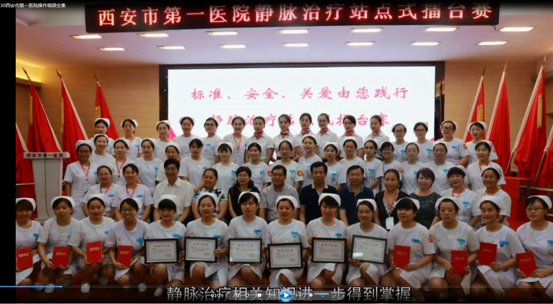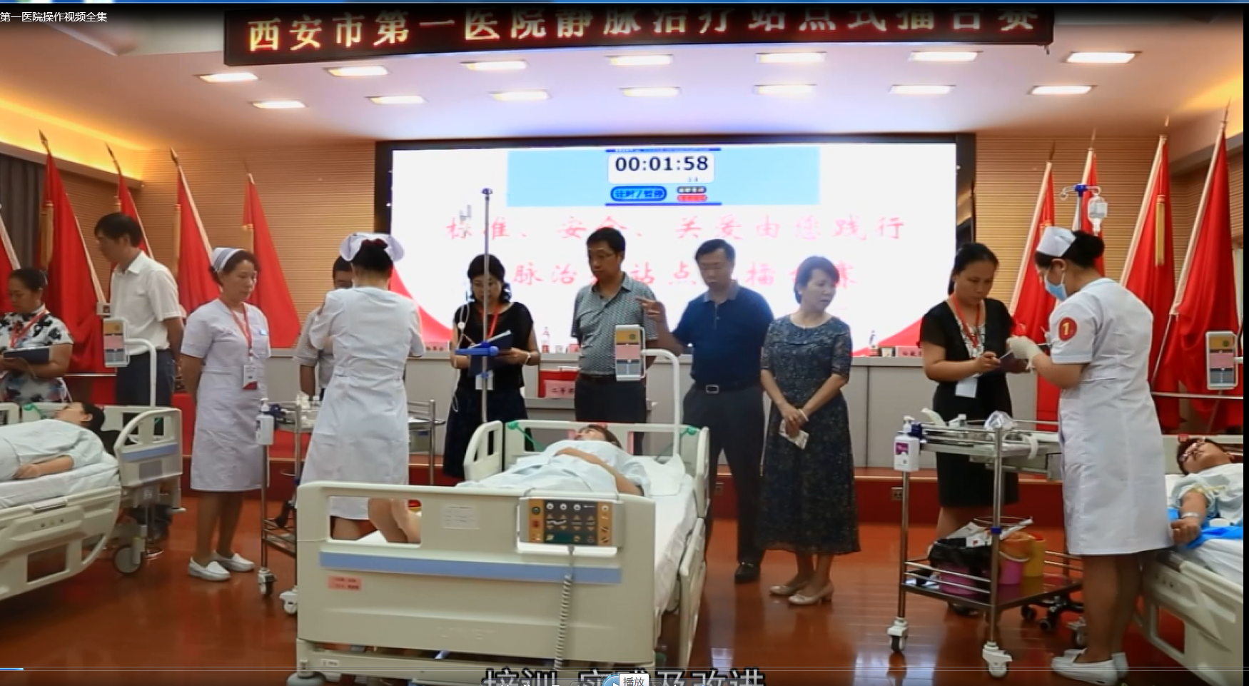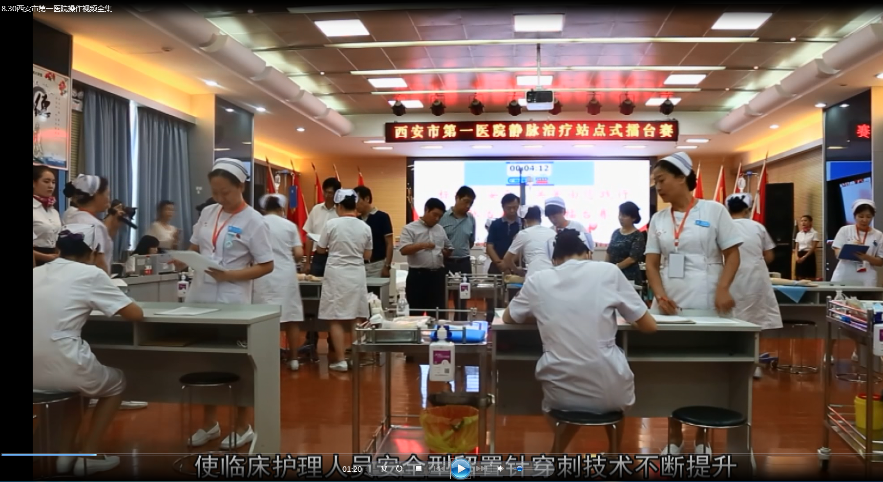 院领导大力支持护理专业发展,护理部长期致力于规范静脉治疗的学习、培训、实践及改进,为了贯彻落实2016版《输液治疗实践标准》,护理部积极响应陕西省护理学会关于《标准、安全、关爱---由您践行》活动的号召,组织全院临床护理人员开展宣贯、培训、研讨、实践等系列活动:组织2000余人次参加“静脉治疗全国网络在线测评”(共四场,每场400余人次参加);举办全院“静脉治疗站点式技能竞赛”;拍摄《静脉留置针穿刺》视频等系列活动。通过一系列的活动,使得临床护理人员更好地掌握输液标准,自觉践行标准,保障患者输液安全。