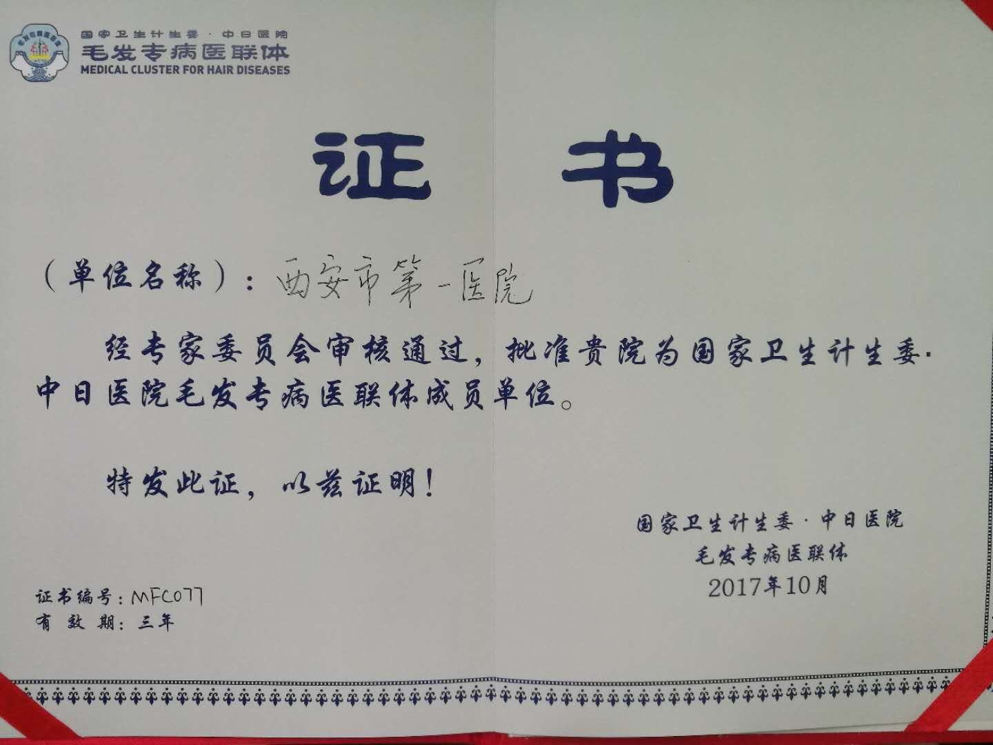 被批准成为“国家卫生计生委、中日医院毛发专病医联体成员单位”。