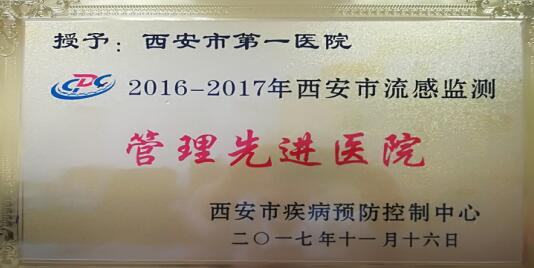 “2016-2017年西安市流感监测管理先进医院”称号。