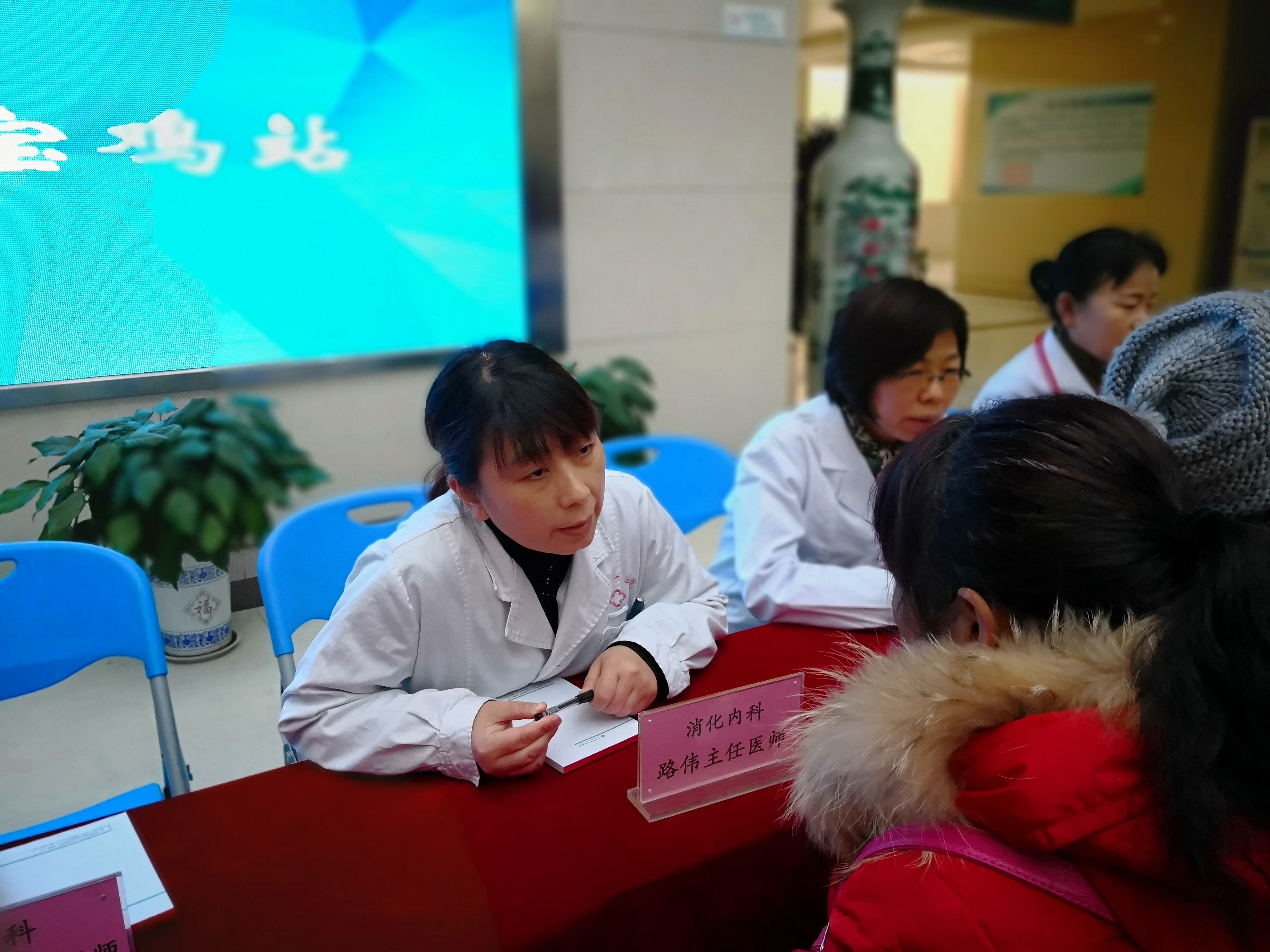 16日一大早,宝鸡高新人民医院门诊大厅内已坐满等待专家的群众,简单的启动仪式后,活动正式开始,诊疗桌前瞬间排起了长队,这边,杨俊玲为患者有条不紊进行着血压、血糖的检测,那边,各位专家一字排开,开始了紧张忙碌的工作。此次活动,专家阵容强大,前期准备充足,前来就诊的患者手中都握有厚厚的一摞病历资料,急切的等待着自己心仪的专家为其排忧解难,答疑解惑;大内科赵梦云主任,神内科吴松笛主任,眼科杨建刚副院长,肾内科刘安平主任,儿科罗新育主任(西安市儿童医院),妇科杨賽莲主任(西安市妇幼保健院),口腔科乔凯主任医师、骨外科叶宜伟主任医师,心内科王晓红主任医师,消化内科路伟主任医师,中医科黄骁洪、周瑞堂主任医师等专家耐心地询问病情,认真地查阅资料,详细地进行讲解,患者的紧张焦虑慢慢释放了,紧撺的眉头渐渐舒展了,嘴角的笑容显现了。吴洁护士长仔细认真地为患者发放药物,当一片片药物,一支支眼水发放到患者手中时,患者的眼中充满了感激之情,和谐美好的氛围滋养着在场的每一位。