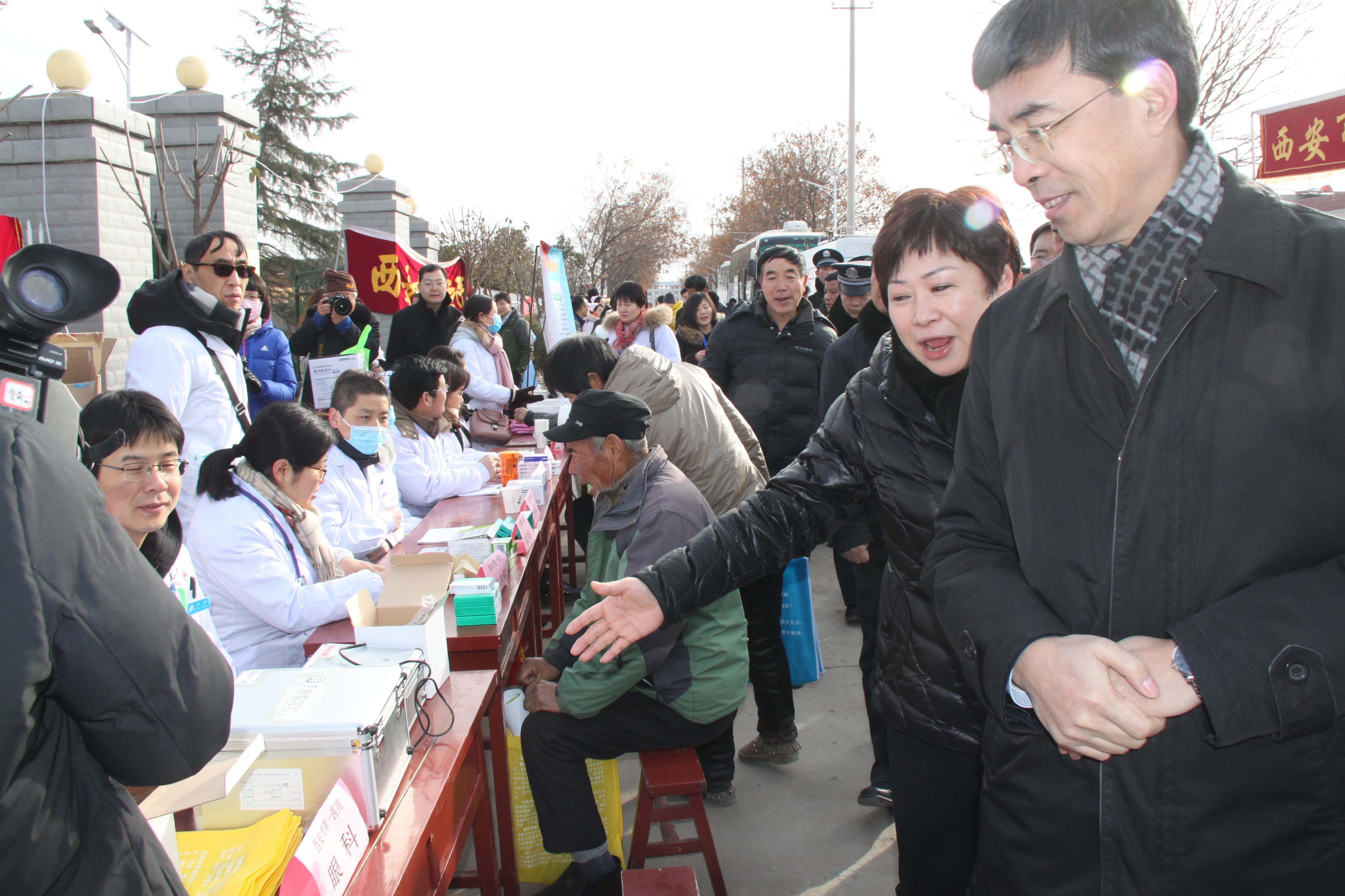 邵景副院长带队,由医务科胡明军科长、呼吸科李延主任、心四病区方顺淼副主任、发热门诊赵新民主任、眼科惠玲主任医师等24人组成医疗服务队,走进长安区黄良街道北仁村文化活动广场开展大型义诊咨询活动。西安市委宣传部吴键部长、市委计委副主任薛林莉等领导亲临现场参加了义诊活动,并亲切慰问了参与义诊的医疗团队。