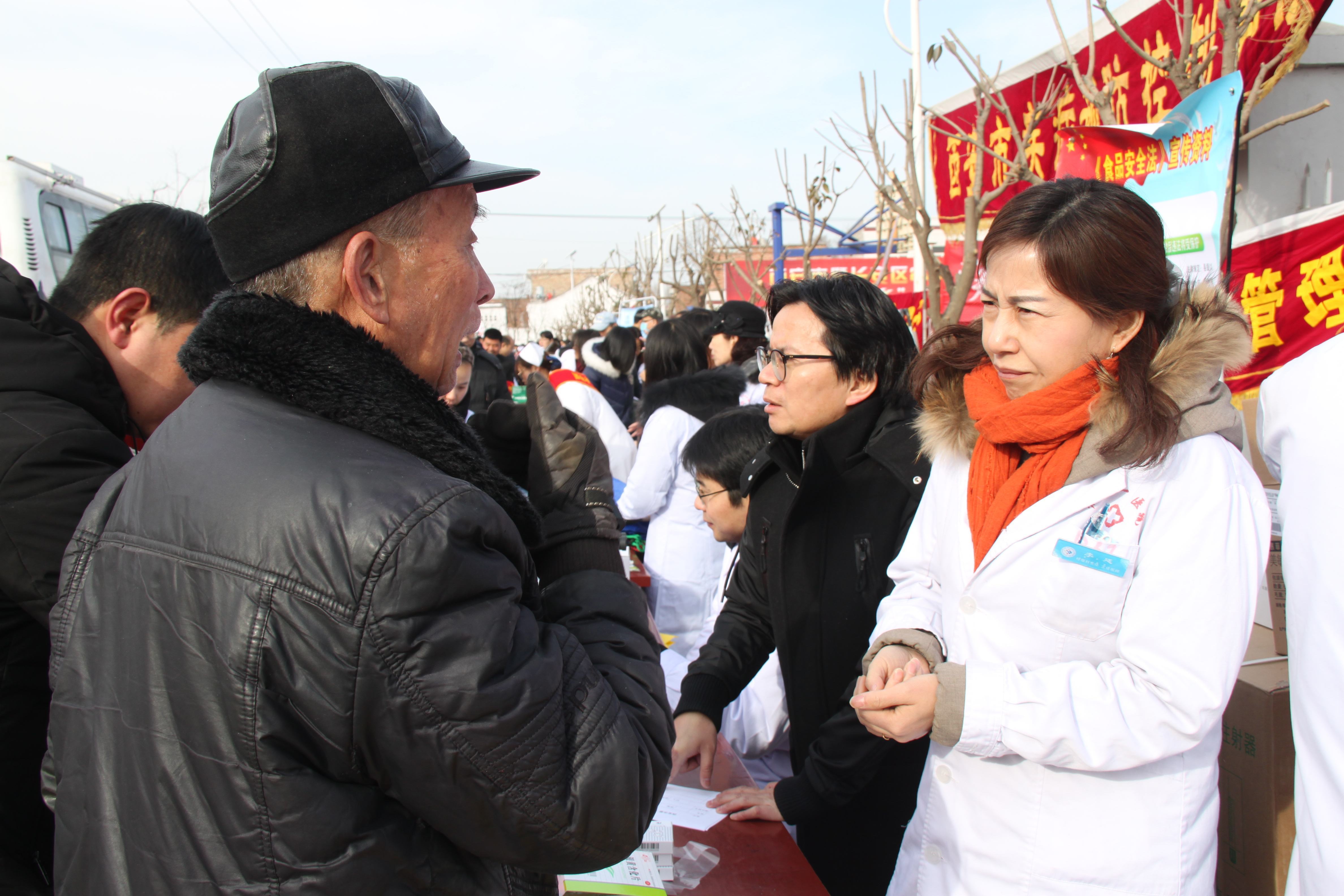 第一个达现场,大家开始拉横幅、搬桌椅、清点药品器械,摆放宣传板,忙得不亦乐乎,当地群众也都陆陆续续赶来。专家们发挥医学专长,为群众测量血压,讲解日常生活小知识,帮助现场群众树立健康的生活观念,保持良好的生活习惯。直到中午12:00现场前来就诊的市民仍然络绎不绝,大家坚持耐心的为每位患者诊疗,根据具体病情认真制定治疗方案,将诊疗落到实处,据统计,接待咨询的群众150余人,为群众测量血压、血糖60余人次,建议进一步检查和治疗的约15人次,并在现场捐赠、发放医疗宣传书籍150余册、棉签4.5万支、注射器5400支、输液器1000 支、避孕套50盒、日常药品3000余元。