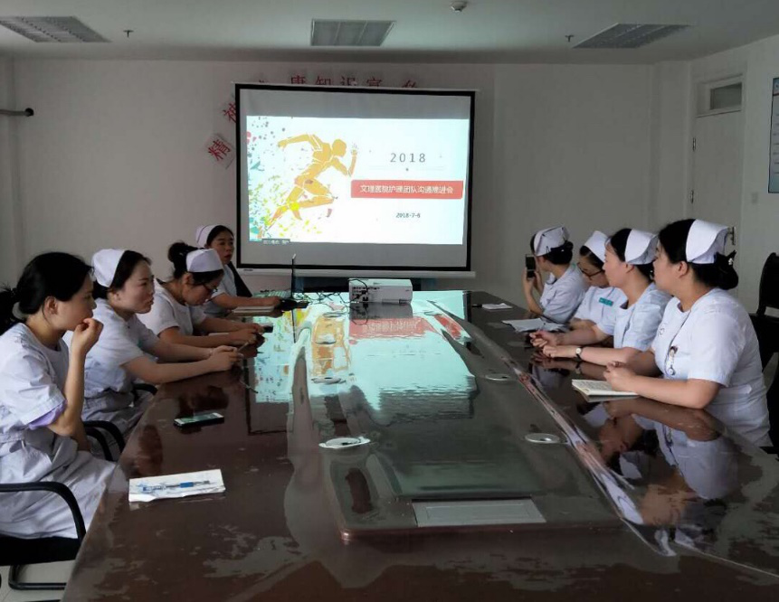 2018年7月6日下午,护士长许芳芳为全体护理人员召开护理工作沟通推进主题会议。座谈会上许芳芳护士长针对目前护理工作现状提出了“提升团队凝聚力,改善病区环境和卫生、提升护理安全及服务质量”的护理工作方向,各位护理人员各自结合工作实际,提出很多需要改善和改进的短板,并分析了护理工作中存在问题的根本原因,有针对性的提出对策,每位护士踊跃发言,从不同角度为提升文理医院的护理服务质量献计献策。
