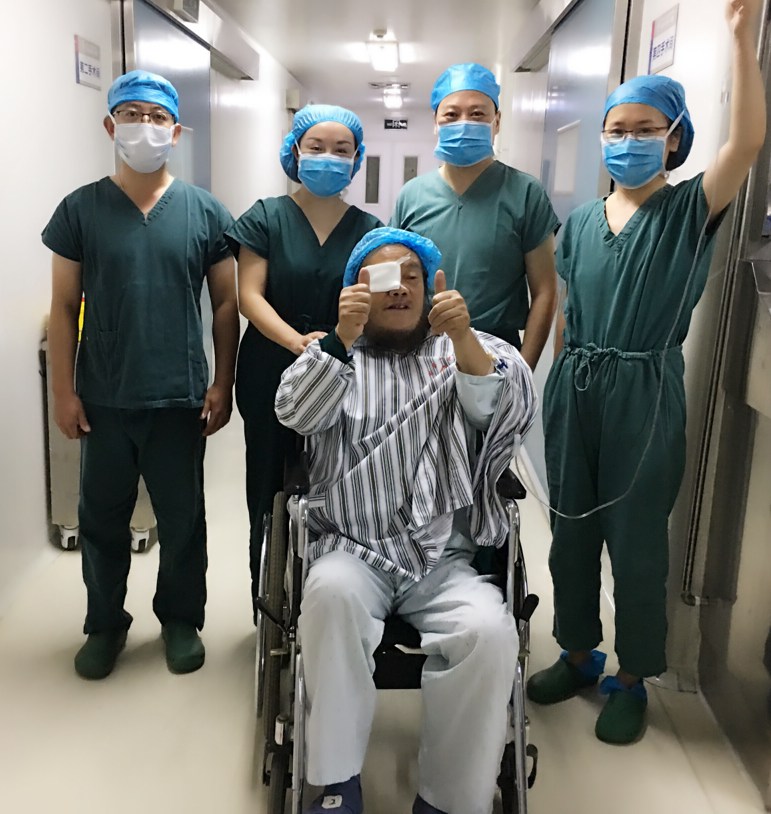 眼科医院副院长马挺、眼六病区副主任王睿、麻醉科副主任冯大鹏、眼科手术室护士长朱薇分别对两位患者进行了术前评估,决定于7月18日为两位患者实施“无痛性”白内障手术。在三方的共同协作下术中患者生命体征平稳、术后患者高兴地说“手术这么快就结束了,一点感觉都没有,解决了我多年的困扰,你们的技术真高超呀!”
