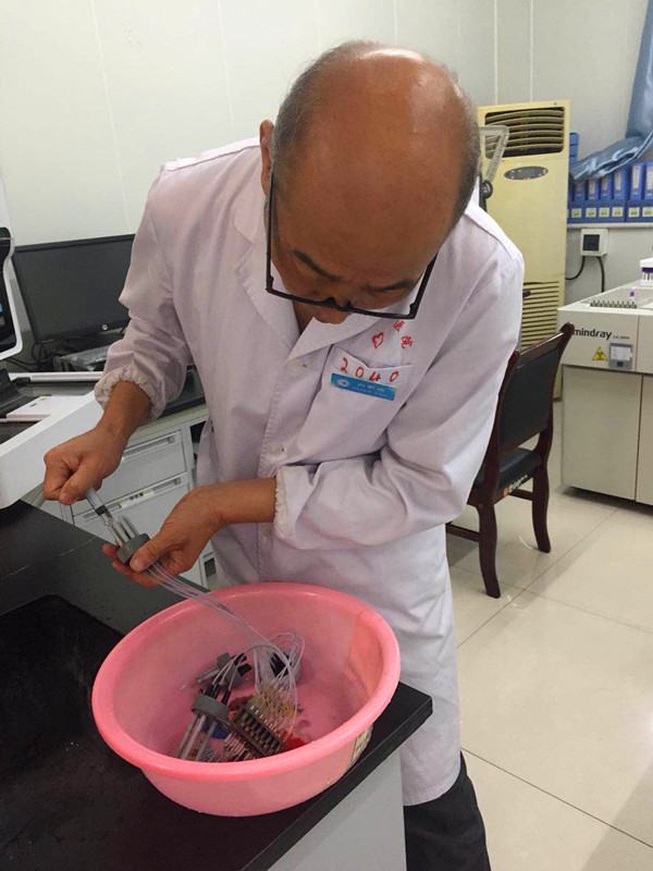 此外近期我们陆续开展ISO 15189工作,作为一名即将退休的同志,他仍然没有放弃任何一个学习的机会,将认可准则和生化各个应用说明仔细研读,换成自己的语言记录在自己的笔记本中指导工作,经常在加班加点做仪器维护、性能验证等各项工作,作为科室的二线,科室在节假日出现任何问题,他都会第一时间赶到科室,为大家排忧解难。白家瑞同志良好的医德医风、强烈的责任心、认真的工作态度以及遇到问题能迎难而进的精神值得我们大家学习。