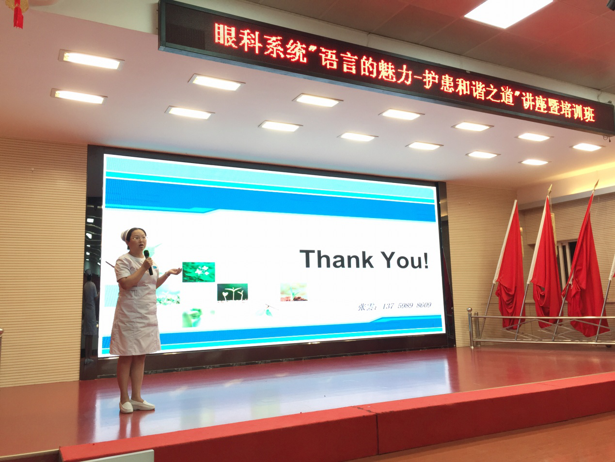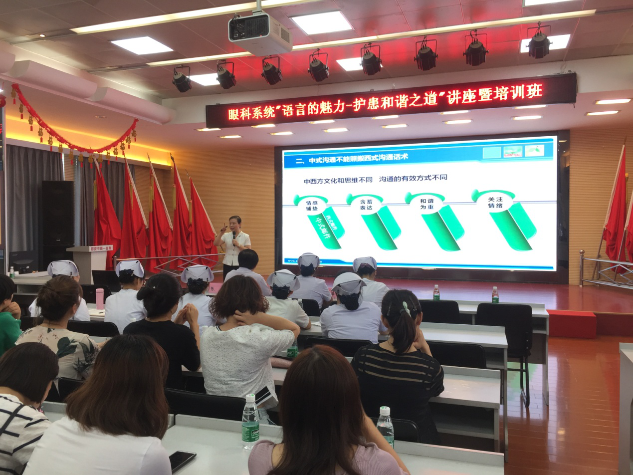 副院长邵景、护理部主任任艳萍、副主任张蕾亲临现场指导。眼科医院全体护士长和近100名护理人员参加了此次学习和交流。