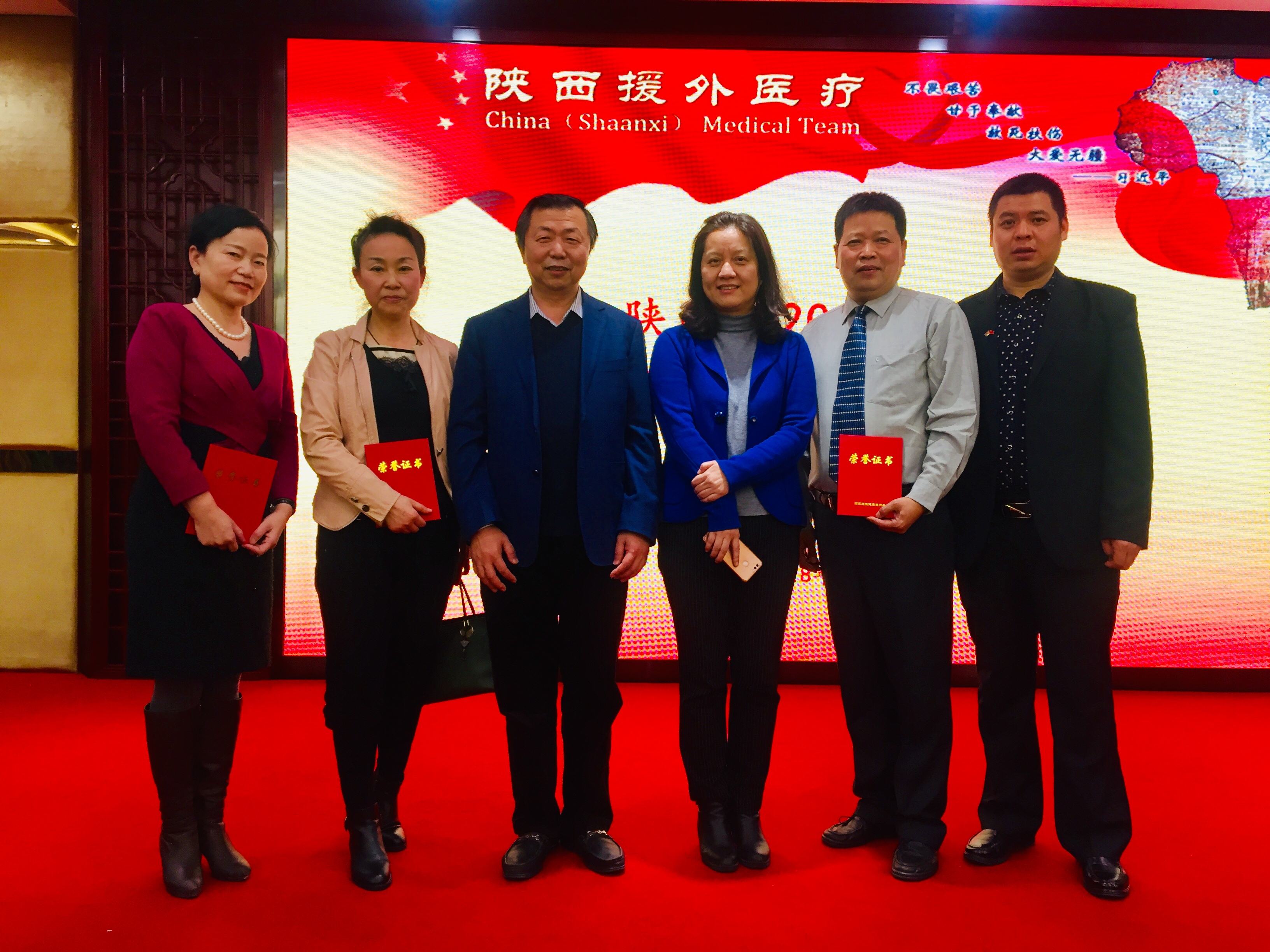 援外医疗队员丁桃英、王晓红、惠志强及张瑞参加了本次会议并获得了荣誉证书及合影留念。大会由陕西省卫健委对外工作处王辉主任主持。