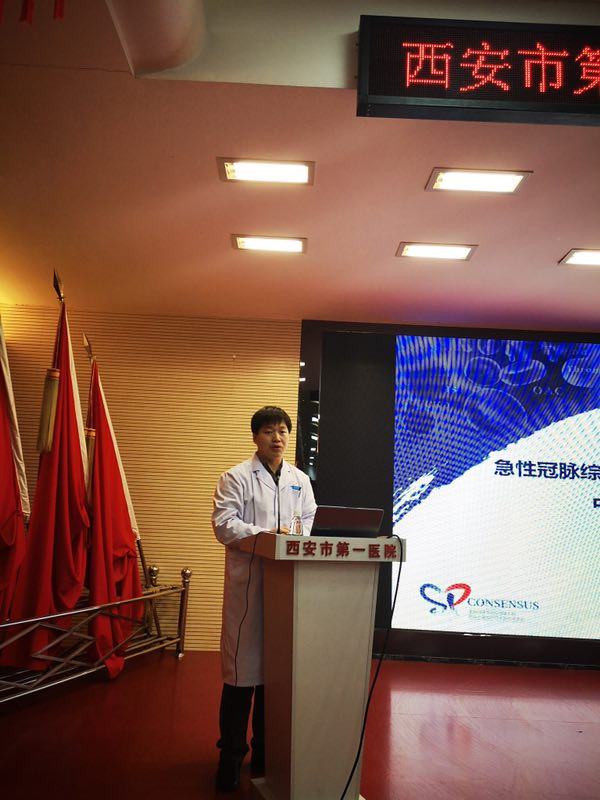 心内四病区副主任李同华讲解“急性冠脉综合征特殊人群抗血小板治疗”;汉中市中心医院胸痛中心医疗总监吴先军讲解“胸痛中心两会一致”。