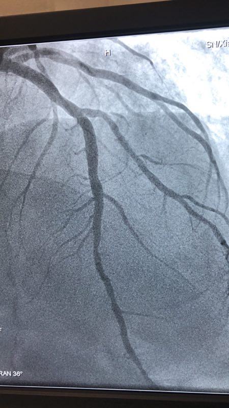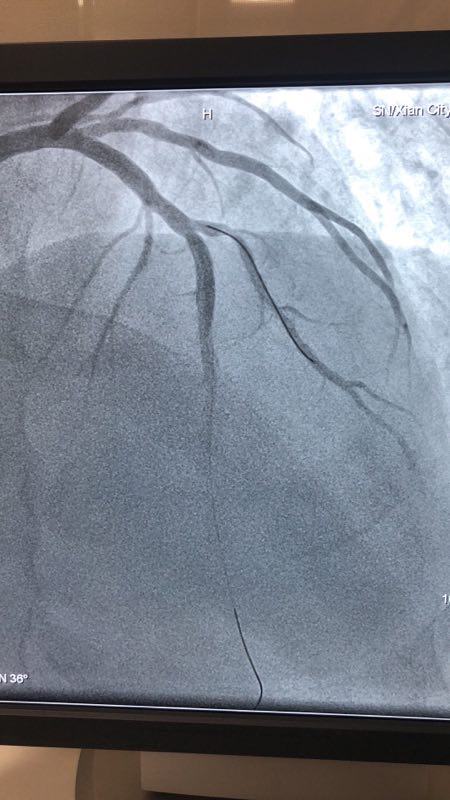 此例患者,男性,56岁,11年前因心绞痛在西京医院行冠状动脉造影检查后于D1对角支置入1枚支架治疗。术后患者口服“阿司匹林肠溶片、氯吡格雷、阿托伐他汀”等药物治疗1年后自行停药,并有长期大量吸烟史。2018年12月24日患者突发胸痛、胸闷,急来21点游戏攻略站