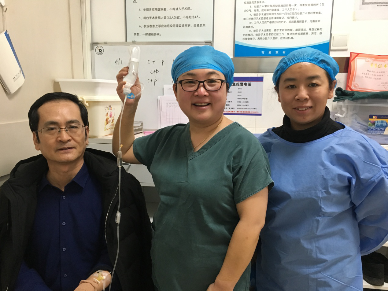 1月8日上午患者术后在李同华主任的协助下完成文理病区首例冠状动脉造影术加冠状动脉支架植入术。术后患者转入心内四病区监护48小时,1月9日患者平安转回我科继续治疗。整个转诊过程无缝衔接,配合顺畅心血管病医院的各位主任护士长们纷纷表示,只要文理病区需要,术后患者可以转往心血管医院任何一个病区监护。距离无法阻隔我们发展的脚步,无法阻隔我们团结一致为患者服务的信心。