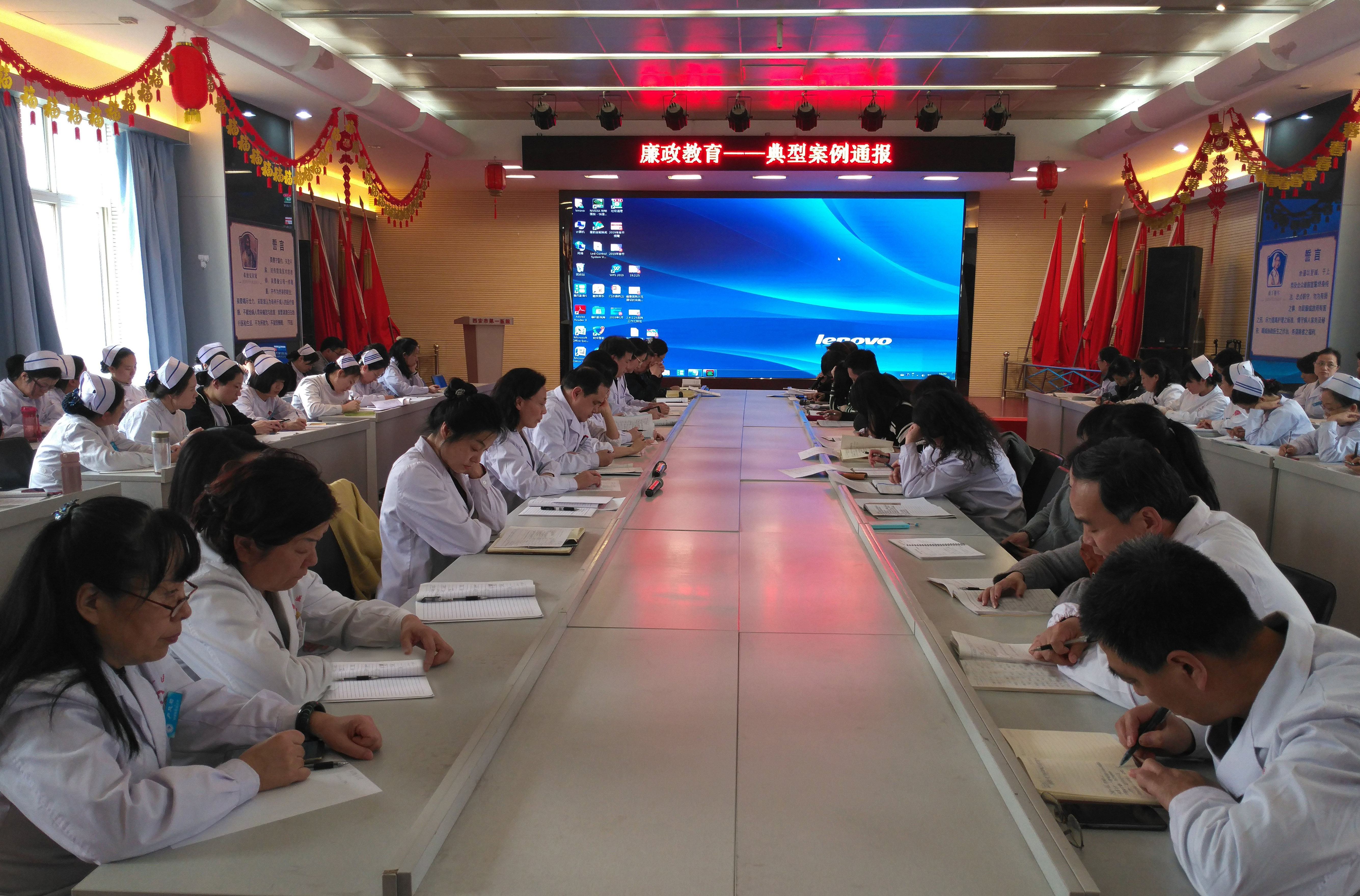 召开中层大会,领导班子成员、全院中层干部参加。会上,纪委书记白敏芳传达《关于进一步做好违规收送礼金专项整治有关问题的解答》、《市卫健委转发<市纪委关于对原西安市建设工程招投标管理办公室西安市建设工程交易中心有关问题调查处理情况的通报>的通知》文件内容,要求全院干部职工要认真领会文件精神,各支部和各科室要加强对人员的警示教育,及时开展自查自纠,防止和杜绝类似问题的发生。