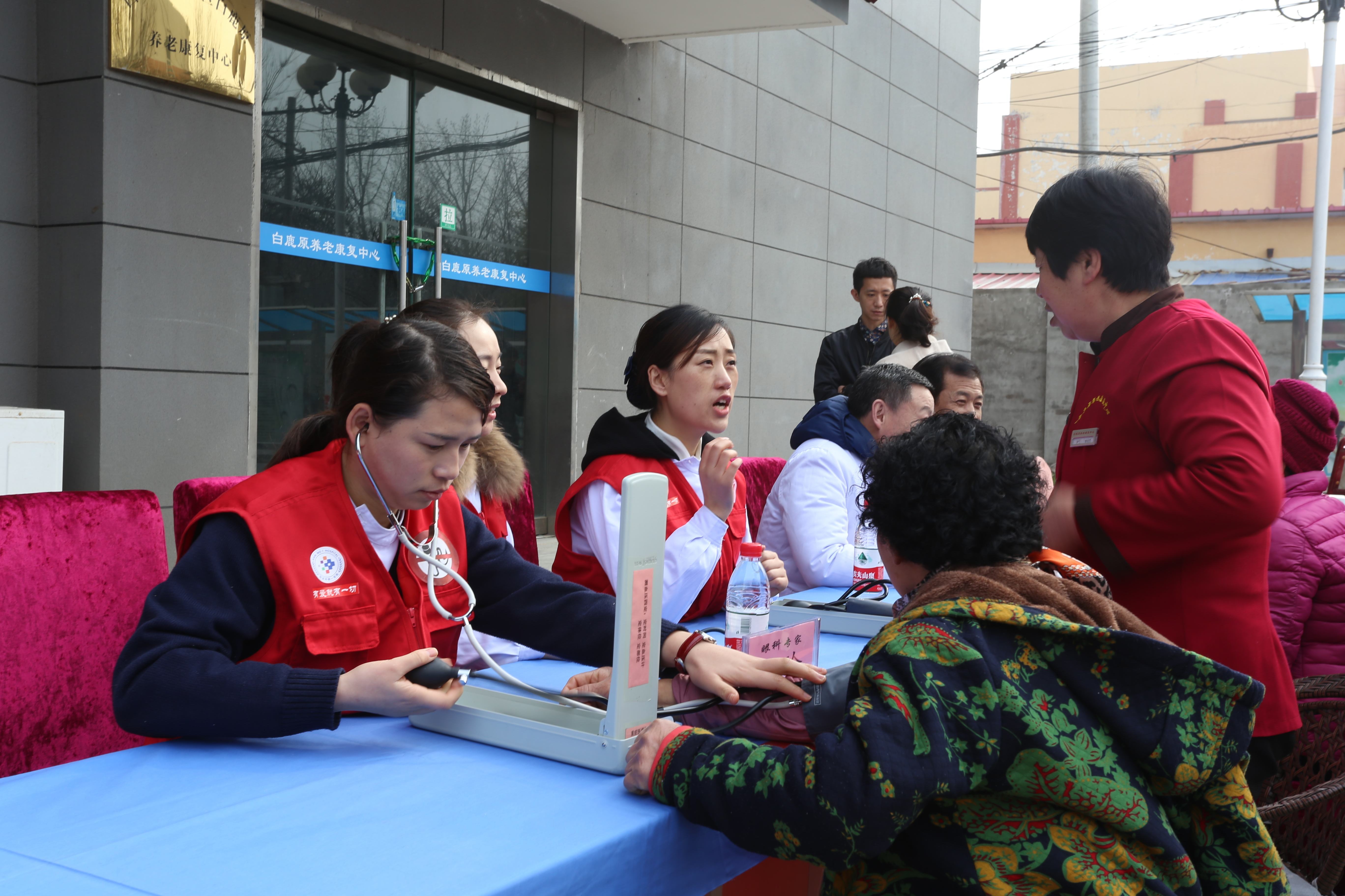 联合西安市红会医院,组织40余名志愿者,共赴白鹿原养老康复中心慰问关爱老人,并开展义诊活动。