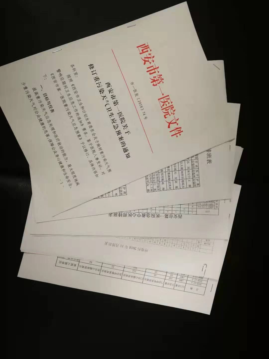关于修订重污染天气卫生应急预案的通知》,成立了医疗救治领导小组及专家组,设立重污染天气诊室,并在门诊大厅放置宣传栏。强化重点科室医护力量,针对呼吸科、急诊科等科室增派人手,确保重污染天气的应急工作。