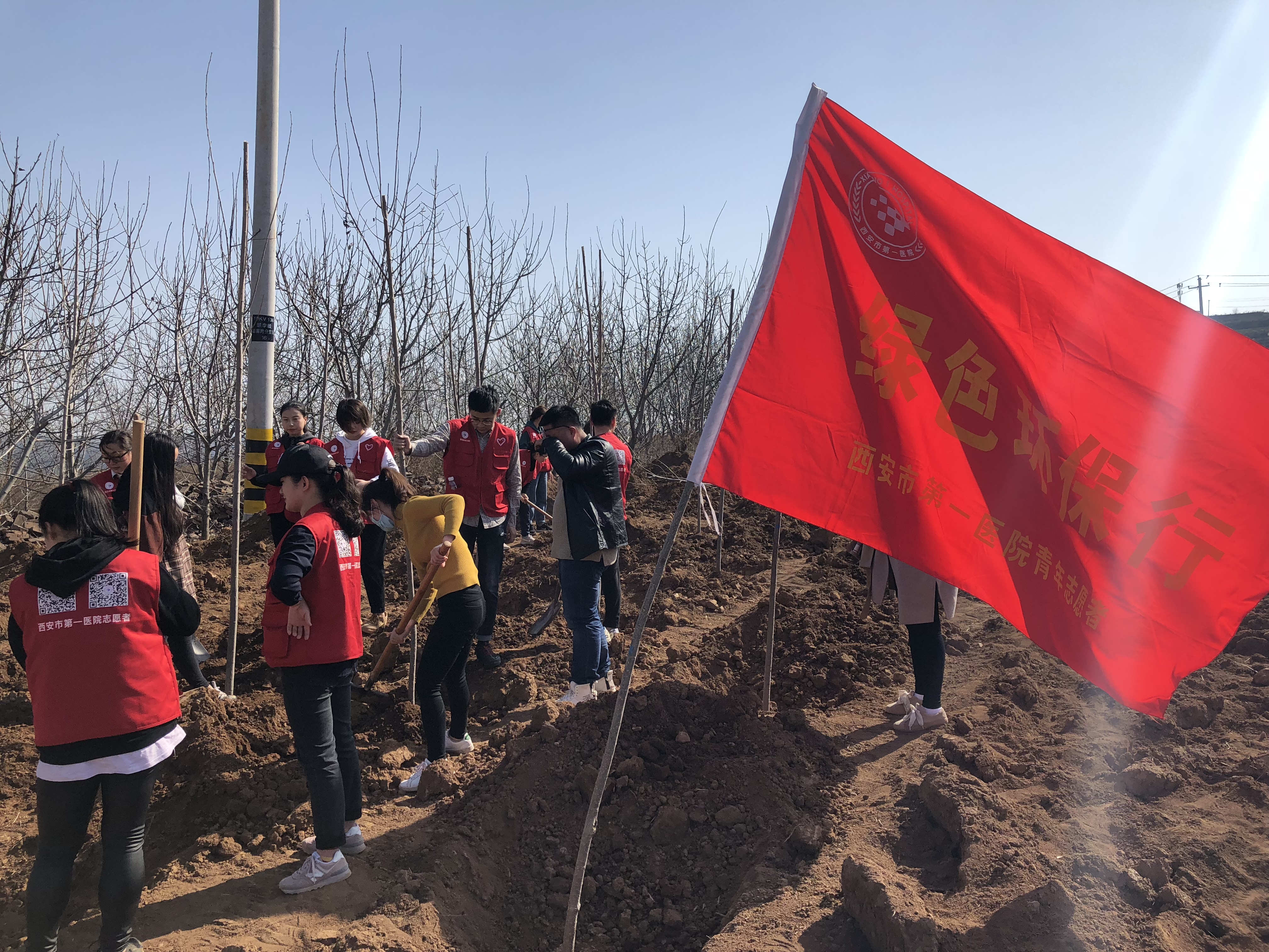 等11家市属三甲医院青年团员共计120余人,到西安市临潼区业池村开展“保护秦岭——青年志愿者在行动”植树活动。西安市临潼区团委书记于笑晨出席此次活动。
