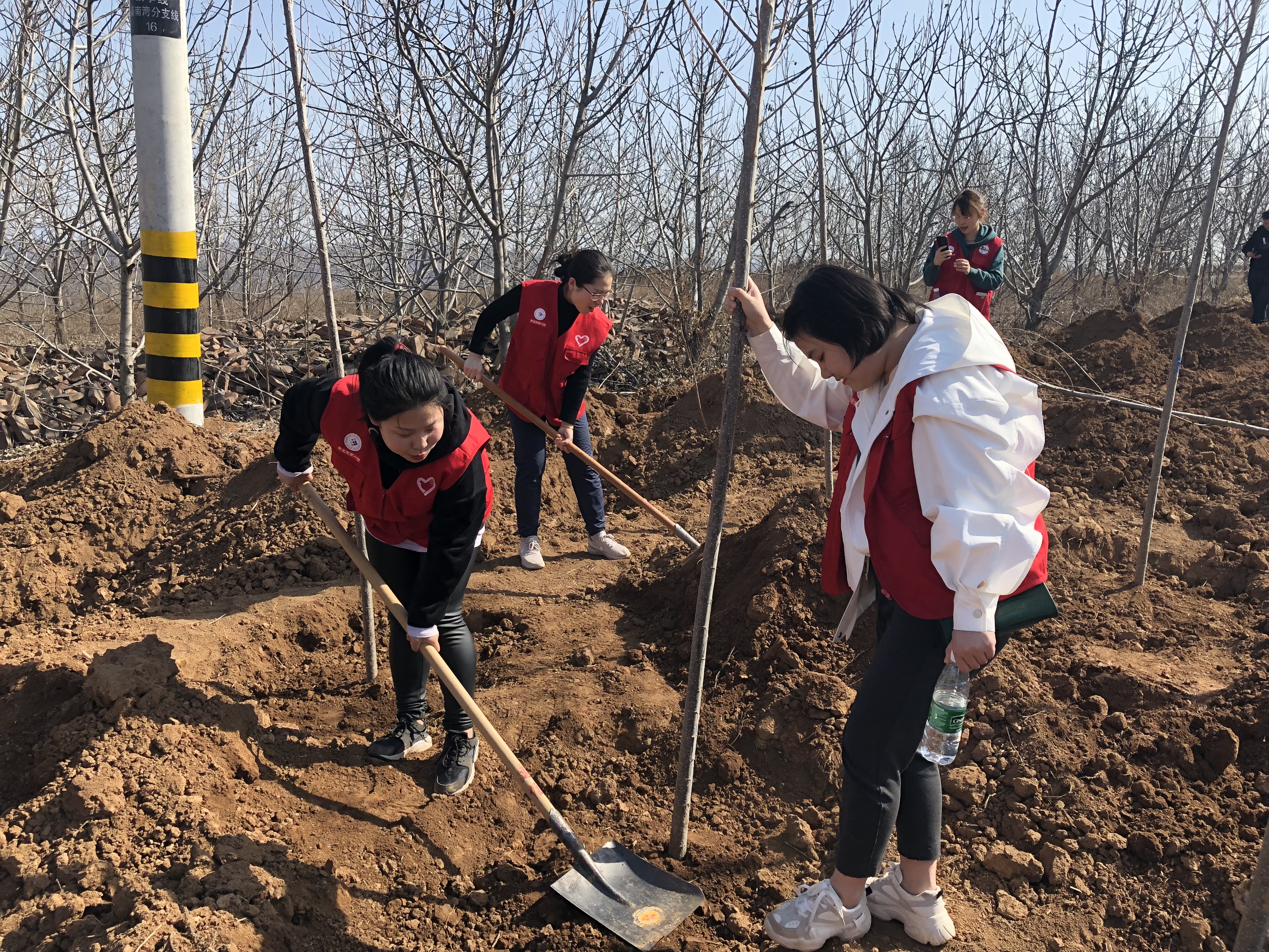 山中的业池村,春意盎然。下午3时许,在村干部和村民们的指引下,大家挖坑种树、铲土培实,三人成组、五人成团,每道工序都认真细致、一丝不苟。植树现场,处处是忙碌的身影,一番热火朝天的劳动后,一棵棵新栽种的杨树苗亭亭玉立,在明媚的春光中展现勃勃生机,为初春的大地增添了丝丝活力。