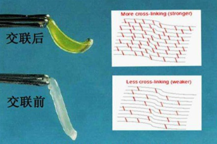 人的角膜内,有丰富的胶原纤维,也含有天然的交联因子。随着人年龄的增长,角膜也会自发的形成交联,以此增加角膜硬度。临床上使用的角膜胶原交联术,是通过一种化学过程,可以用增加交联因子的方式来加固角膜组织。它以核黄素作为光敏剂浸泡角膜,应用370nm紫外线对角膜进行局部照射,刺激角膜内胶原纤维交联,可增加角膜硬度和强度。