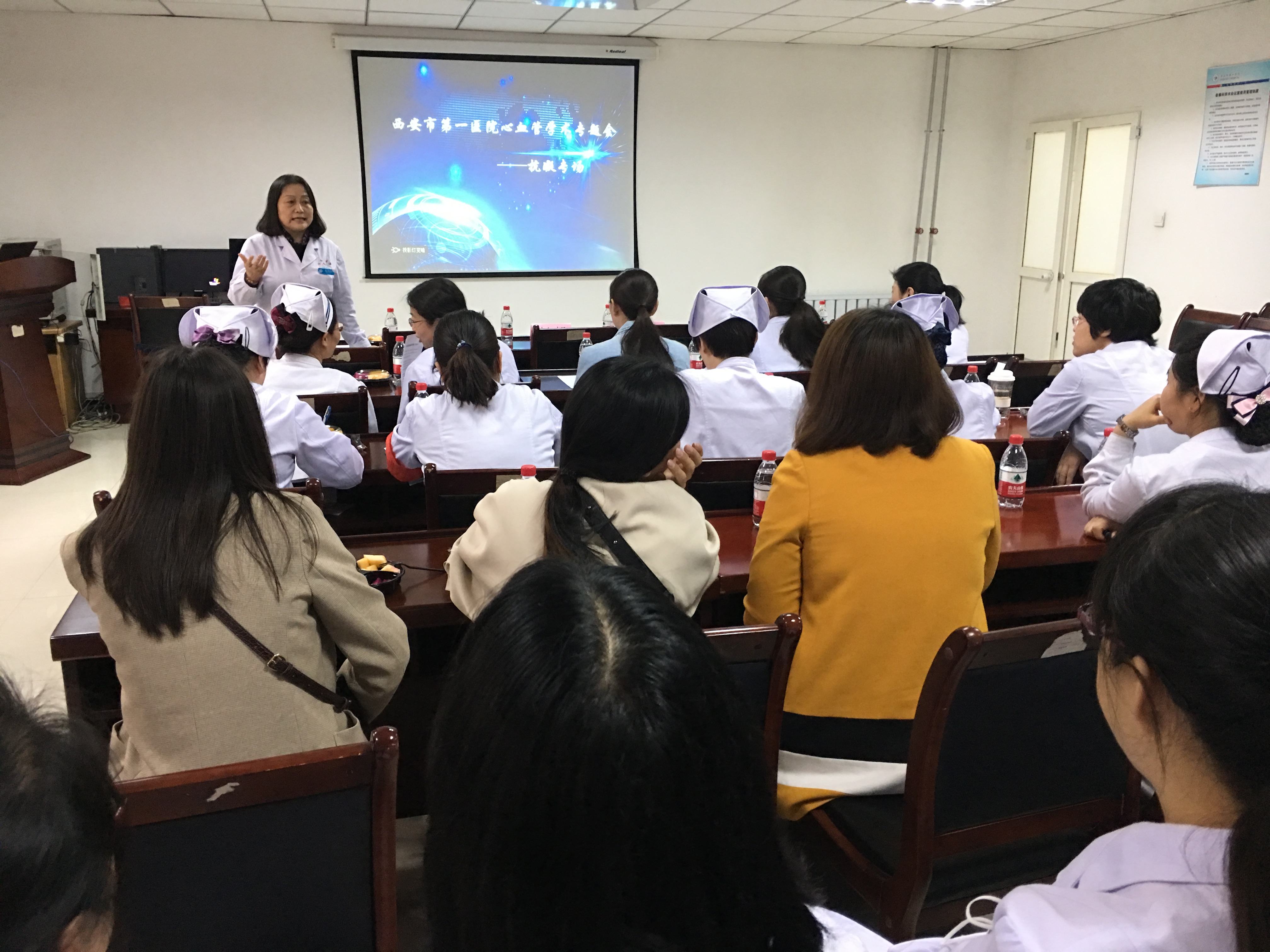大会由心血管病院院长程曼丽主任医师主持,特邀嘉宾为交大一附院心内科王军主任,心血管病院副院长郭瑄主任医师、赵朝主任医师担任讲者,心血管全体医护人员参会。