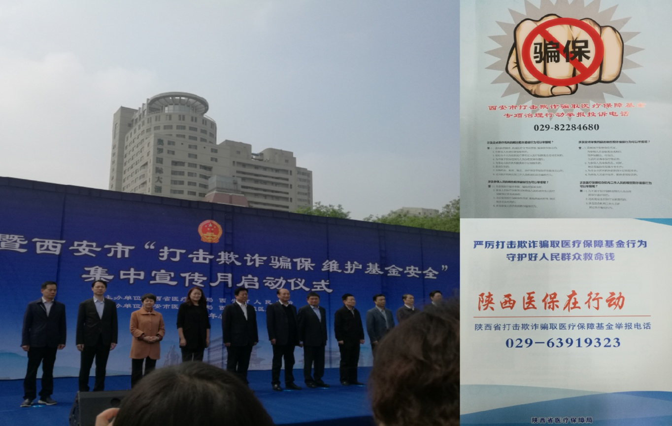 2019年4月11日上午,陕西省医疗保障局、西安市人民政府在新城广场联合举行“打击欺诈骗保、维护基金安全”集中宣传月活动启动仪式,标志着为期一个月的打击欺诈骗保集中宣传在陕西正式拉开帷幕。
