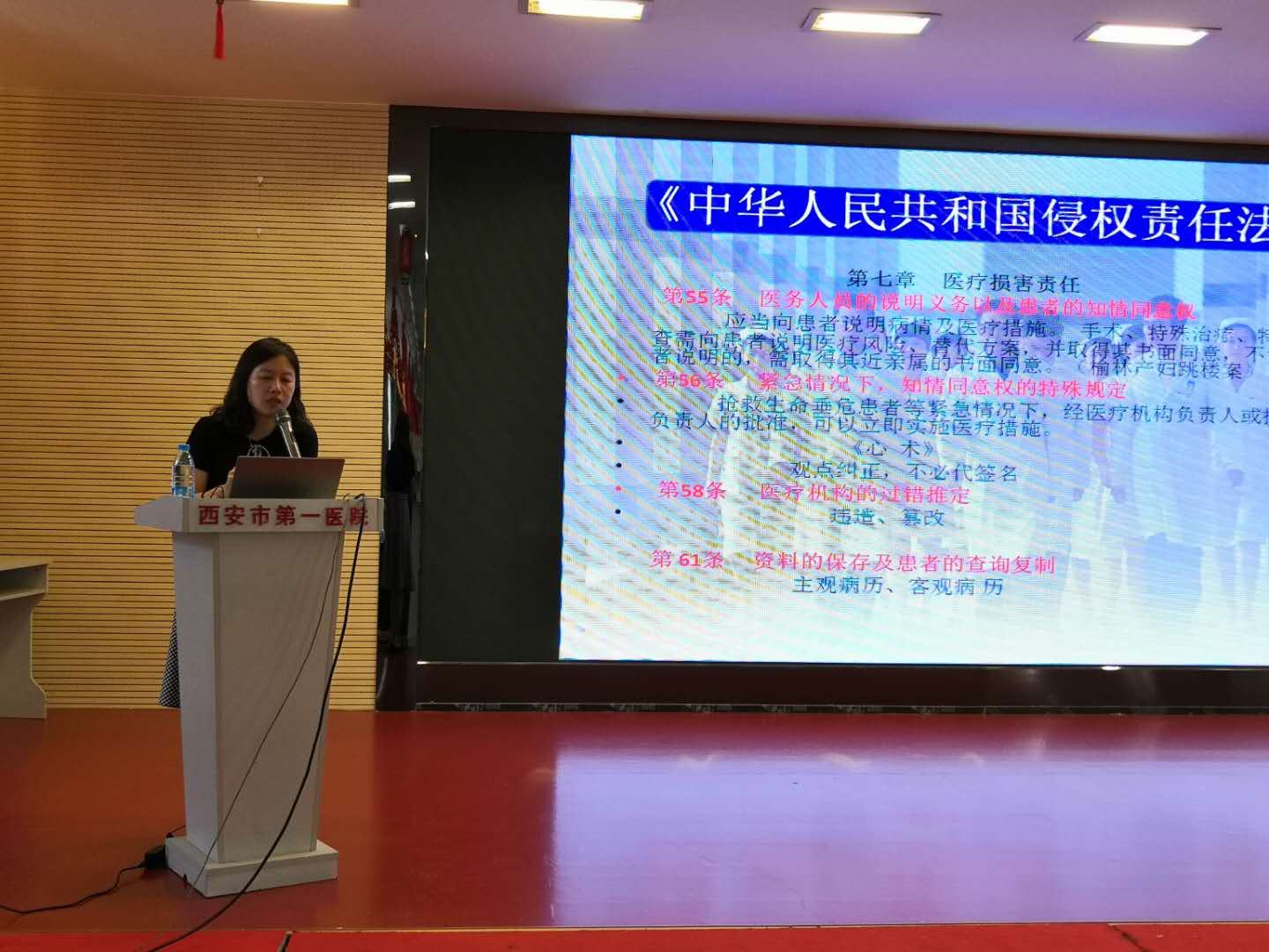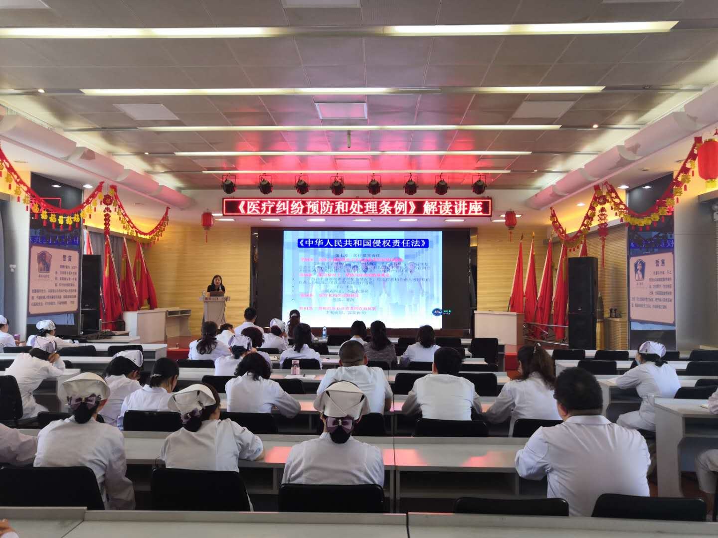 法律顾问任芮律师为全院医务人员进行《医疗纠纷预防和处理条例》解读。讲座由医务科副科长张磊主持。副院长王克平及部分医务人员参加了学习。