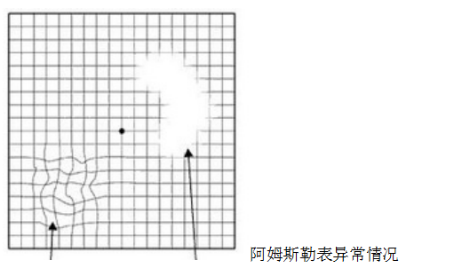采用阿姆斯勒方格表或者看有线条、栅格的窗框或其他有线条、四方格的器皿,把方格表放在视平线30cm处,光线要明亮及均匀,若有屈光不正或近视需佩镜矫正后进行测试,看线条是否变弯、方格变小或变形、久远有无黑影遮挡等异常情况,若异常应尽快到医院就诊。