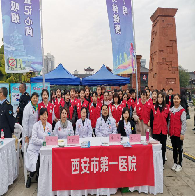 由邵景副院长带队,疾控科、医务科、护理部共同组织40名志愿者,参与了在大雁塔北广场的控烟宣传义诊活动。