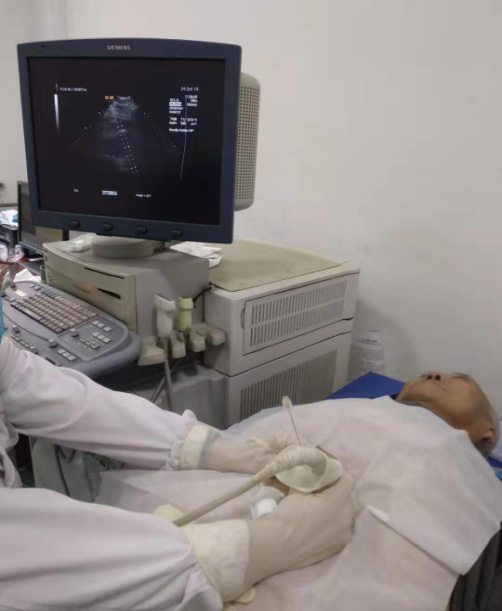 除此之外,我们开展全身各部位肿瘤活检穿刺术,包括肺边缘肿瘤的定性诊断,目前已对颈部淋巴结、肿瘤、肝、肾、乳腺及腹腔内包块进行活检数例,病人得到了明确诊断,同时还可以注射酒精治疗。经超声引导微创诊断和治疗是目前医疗发展的新方向,为患者更好的服务。