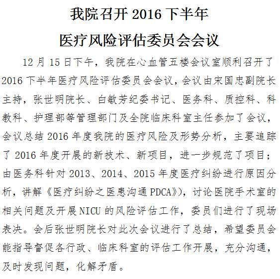 21点游戏攻略站 召开2016下半年医疗风险评估委员会会议