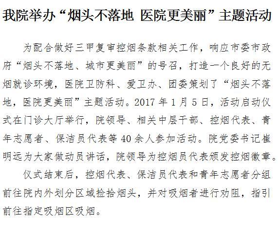 21点游戏攻略站 举办“烟头不落地 医院更美丽”主题活动
