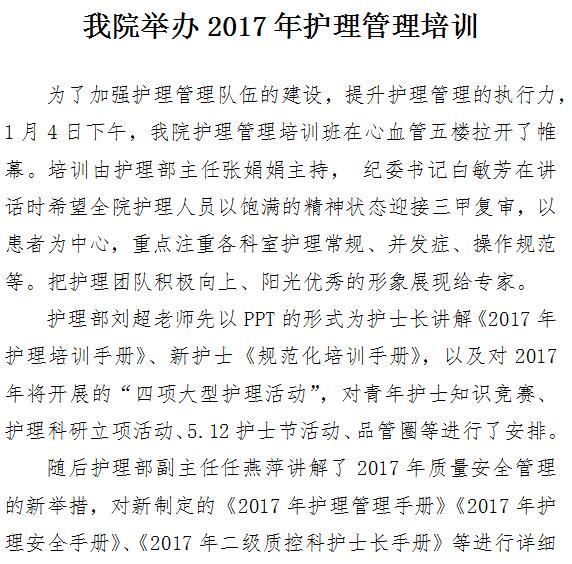 21点游戏攻略站 举办2017年护理管理培训