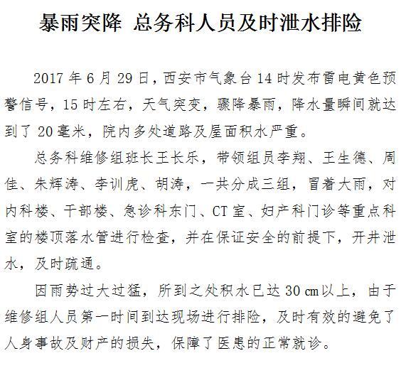 暴雨突降 总务科人员及时泄水排险