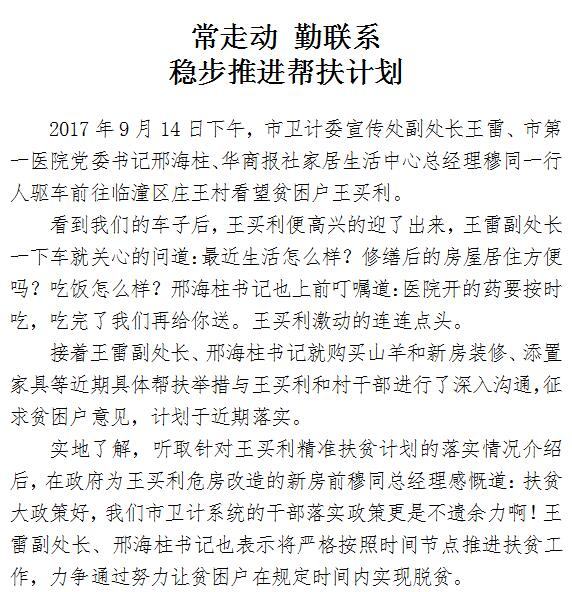 常走动 勤联系 稳步推进帮扶计划