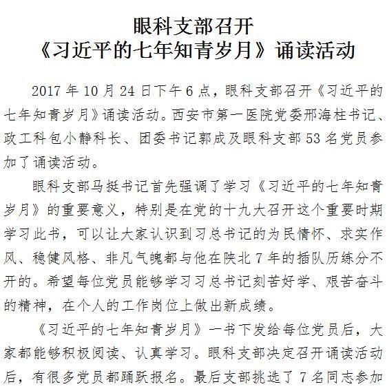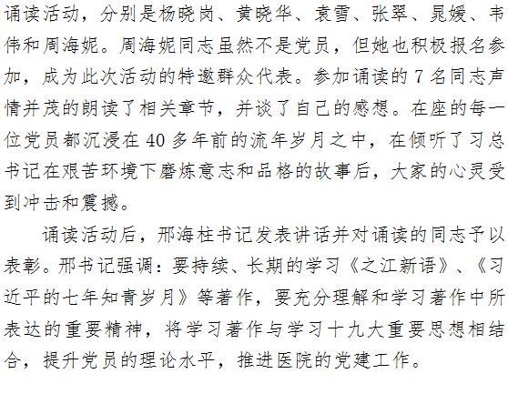 眼科支部召开《习近平的七年知青岁月》诵读活动