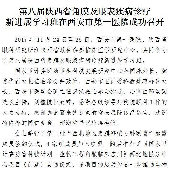 第八届陕西省角膜及眼表疾病诊疗新进展学习班在21点游戏攻略站 成功召开