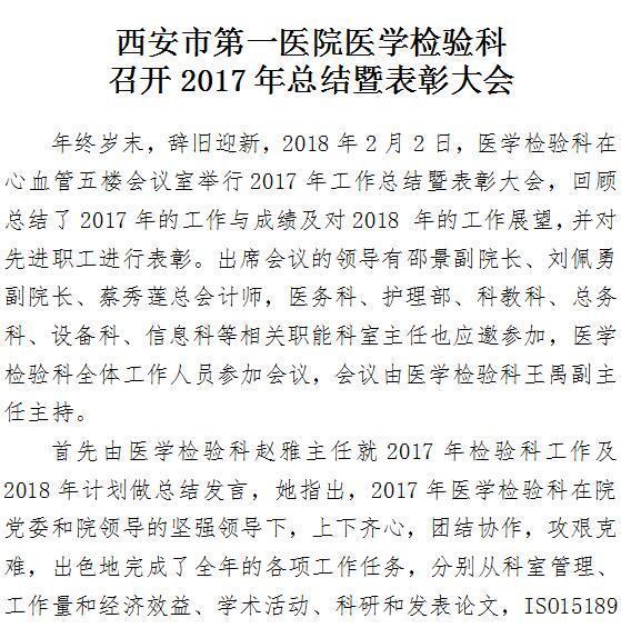 21点游戏攻略站 医学检验科召开2017年总结暨表彰大会