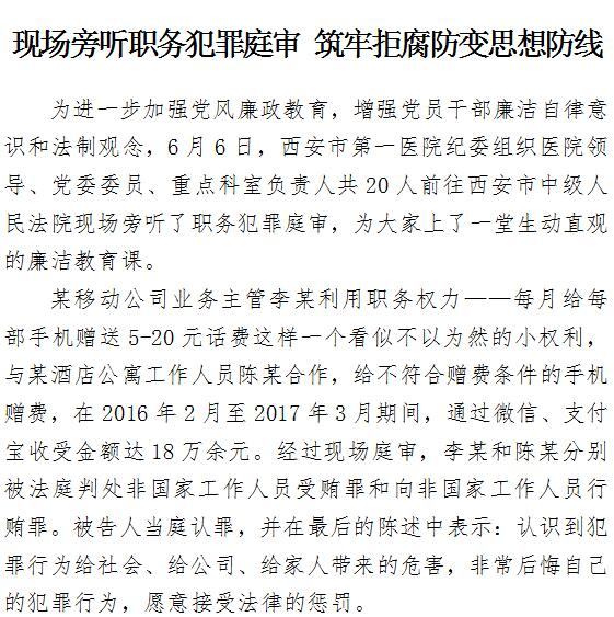 现场旁听职务犯罪庭审 筑牢拒腐防变思想防线
