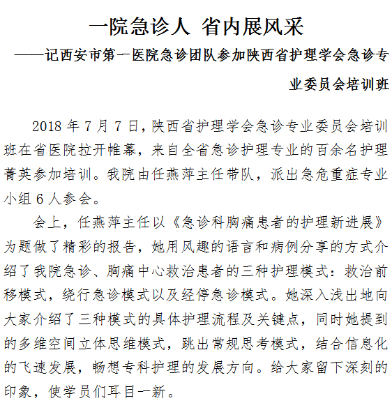 记21点游戏攻略站 急诊团队参加陕西省护理学会急诊专业委员会培训班